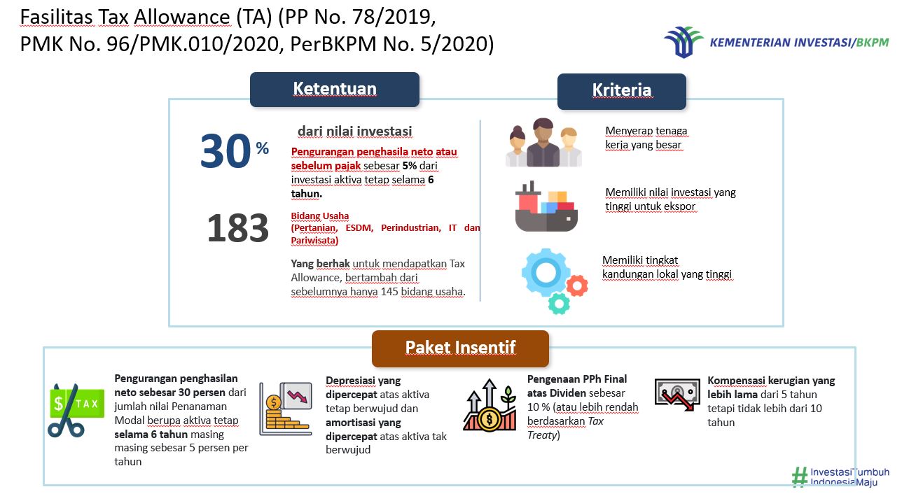 Berdasarkan Peraturan Pemerintah Nomor 78 Tahun 2019 dan Peraturan Menteri Keuangan Republik Indonesia Nomor 11/PMK.010/2020 jo. Peraturan Menteri Keuangan Republik Indonesia Nomor 96/PMK.010/2020, Pelaku Usaha yang melakukan Penanaman Modal pada Kegiatan Usaha Utama sebagaimana tercantum dalam Lampiran Peraturan Pemerintah Nomor 78 Tahun 2019; dan memenuhi kriteria dan persyaratan tertentu, dapat diberikan fasilitas Pajak Penghasilan. Bidang Usaha pada sektor Industri juga merujuk Peraturan Menteri Perindustrian Republik Indonesia Nomor 47 Tahun 2019.
